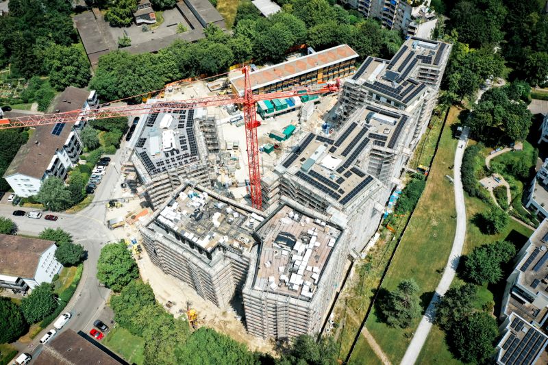 Die Montage von 517 Hybridmodulen ist in vollem Gang. Für die neue Wohnüberbauung Wydäcker erzeugen unsere Module die thermische Energie für das entlasten, respektive regenerieren der Erdsondenfelder.